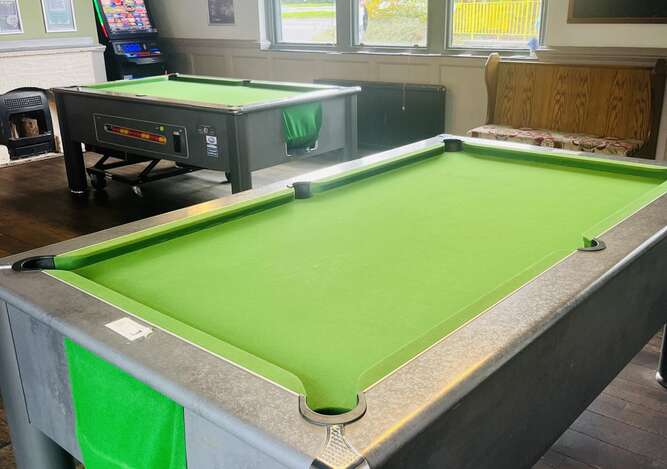 There are three dart boards and two pool tables for your enjoyment.